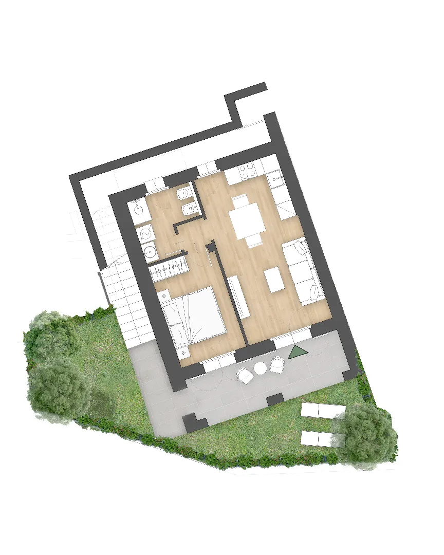 Window Garda ha trentuno unità abitative incastonate tra uliveti secolari, comodi posti auto, un laghetto bio-climatico che incanta i sensi e una terrazza prendisole che offre una vista mozzafiato.