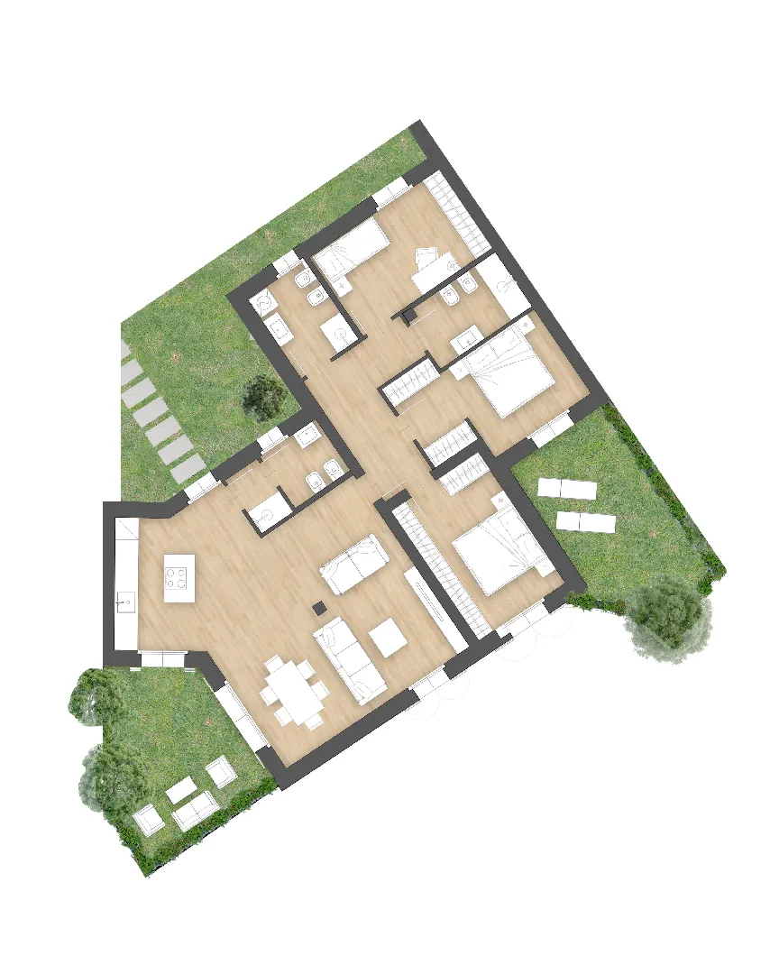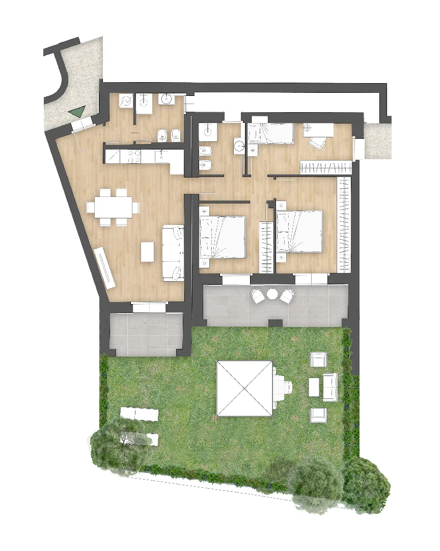31 unità residenziali composti da bilocali, trilocali e quadrilocali. 31 posti auto